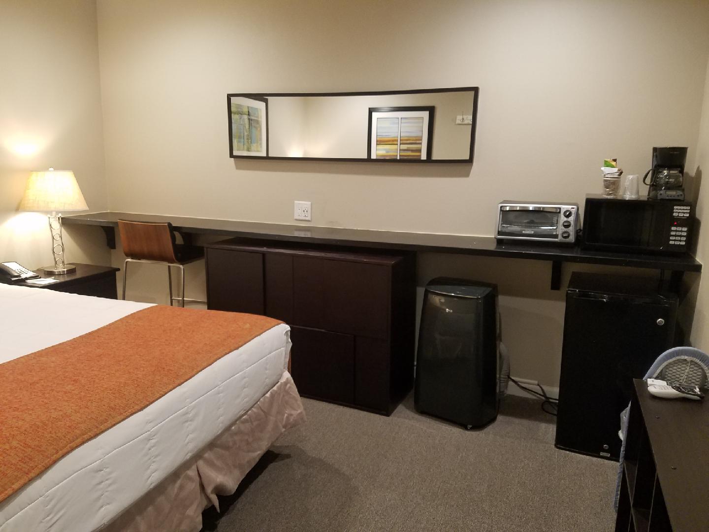 Room Description — Our newly upgraded 1 Queen Bed is great for business travelers who are looking for a long term stay.